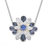 Designed by Shourouk, this rhodium-plated pendant shows a spectacular floral motif embellished with a rainbow of crystal colors. Ideal for summer nights out!