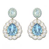 An astonishing mix of crystals in the finest cuts. This pair of gold-plated earrings features a rainbow of crystal colors. Each piece contains a pear-shaped blue crystal surrounded by delicate bezel-set clear crystals.