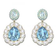 An astonishing mix of crystals in the finest cuts. This pair of gold-plated earrings features a rainbow of crystal colors. Each piece contains a pear-shaped blue crystal surrounded by delicate bezel-set clear crystals. HK$1,160.00