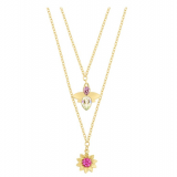 Inspired by nature, this beautiful layered necklace features two gold-plated chains. A delicate, nature-inspired motif dangles from each chain. The flower is embellished with crystals set in Swarovski’s exclusive Pointiage® technique for extra sparkle.