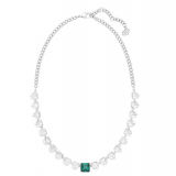 This palladium-plated necklace impresses with its triangular clear crystals with an emerald green-colored crystal at the center. Combining elegance with a fashion edge, it’s perfect for special occasions.