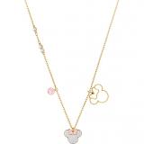 Minnie Mouse will love paying homage to the iconic Disney character with this cool and classic gold pendant. It is decorated in clear crystal with a pretty pink bow, all set in pavé. including a metal silhouette of Minnie and a fancy-cut pink crystal. A gorgeous and on-trend accessory.