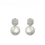 Timeless, feminine and romantic. This exquisite pair of rhodium-plated pierced earrings sparkles in clear crystal pavé with a dangling white crystal pearl. It combines perfectly with the matching necklace or bracelet.