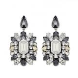 This pair of oversized ruthenium-plated earrings has been created in collaboration with the French fashion designer Shourouk. The prong-set dark crystals sewn on fabric offer an opulent stacked effect, and an embroidered look on a black Alcantara? base.