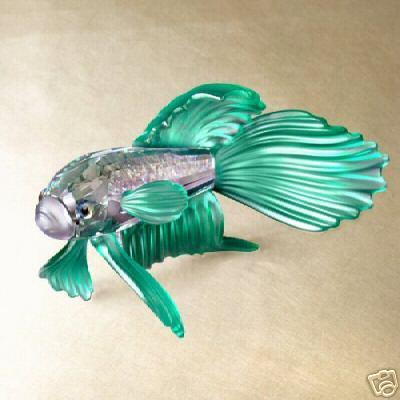 Crystal green Siamese fighting fish,It has a clear crystal body,frosted mouth and green fins and tail.Other siamese fighting fish were available with either bule or red fins.