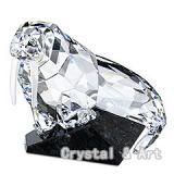 The essence of tranquility is captured in the clear crystal walrus with unfaceted clear crystal tusks.This cut emerald pearl granite base with protective back felt layer on bottom of base.