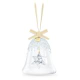 Ring the bells on holiday. The beautiful hand-blown bell jar houses a stylish 3D star-shaped crystal bell hammer with 264 crystal facets, approximately 1,300 small crystals shimmering with moonlight coating, hand glued to the top of the bell, top with a bow and engraved "" 2022" crystal-encrusted label.
