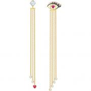 这款镀金色的不对称穿孔耳环,设计揉合了镶有仿水晶的流苏垂饰,采用低温陶瓷镶嵌技术,缀有黑色仿水晶睫毛和渐变紫色仿水晶眼影。此外,镀金色饰框内镶有一颗悬浮似的心形红色仿水晶,既时尚独特,多种佩戴方式,自己或送给挚爱皆适合不过。 HK$1,352.00