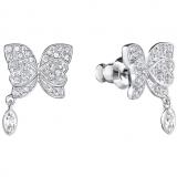 浪漫醉人的白金色穿孔耳环,精致悦目的蝴蝶造型,搭配优美垂坠的水晶吊饰﹔极致妩媚的光彩。