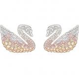 惊艳夺目的天鹅穿孔耳环,精心镶有色彩柔和渐变的水晶,更带有特大的水晶珍珠耳托,令整体造型倍添耀眼。