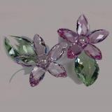 两朵娇艳的茉莉花,玫瑰色花配置白色珍珠中心。水晶树干上两朵青绿色的水晶叶,娇艳美丽。