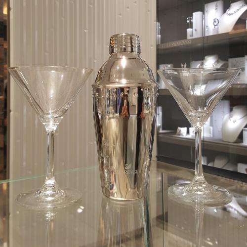 一對雞尾酒杯、並連同一個水晶調酒器,杯底有施華洛世奇標誌。家居擺設或送禮兩相皆宜。