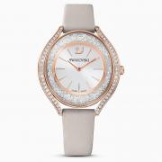 新穎別致為您的手腕增添閃爍點綴。獨特迷人的橢圓形錶殼,同時展現時尚耀眼的風采。橢圓形玫瑰金色不鏽鋼外環,鑲有約1,700顆透明水晶,淺灰色小牛皮錶帶,配以玫瑰金色扣針式錶扣。 HK$2,400.00