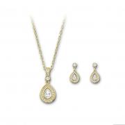 這款精緻小巧,容易配襯的鍍金色套裝,包括隨附飾鏈的鏈墜及穿孔耳環;兩件作品皆以梨形透明水晶搭配透明密鑲水晶飾邊,既是送禮首選,亦是您首飾盒中的典雅瑰寶。 HK$1,184.00