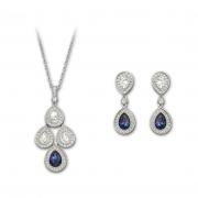 這款魅力非凡的套裝包括鍍白金色鏈墜與穿孔耳環。作品上的梨形墨藍色水晶及透明水晶會隨著您的動作而晃動,彷如水晶吊燈一般,而透明密鑲水晶更為整體設計增添細緻迷人的光彩。 HK$1,352.00